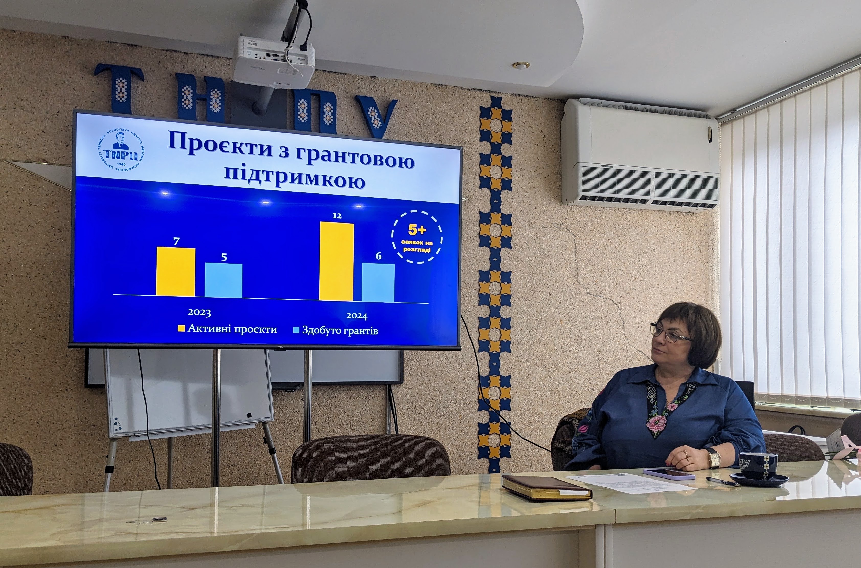 Перший проректор ТНПУ Надія Дробик наголосила на важливості активізації проєктно-ґрантової роботи для розвитку університету.
