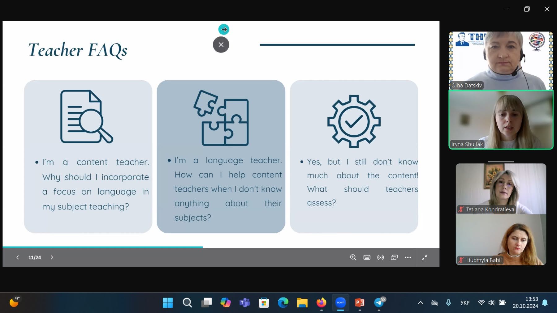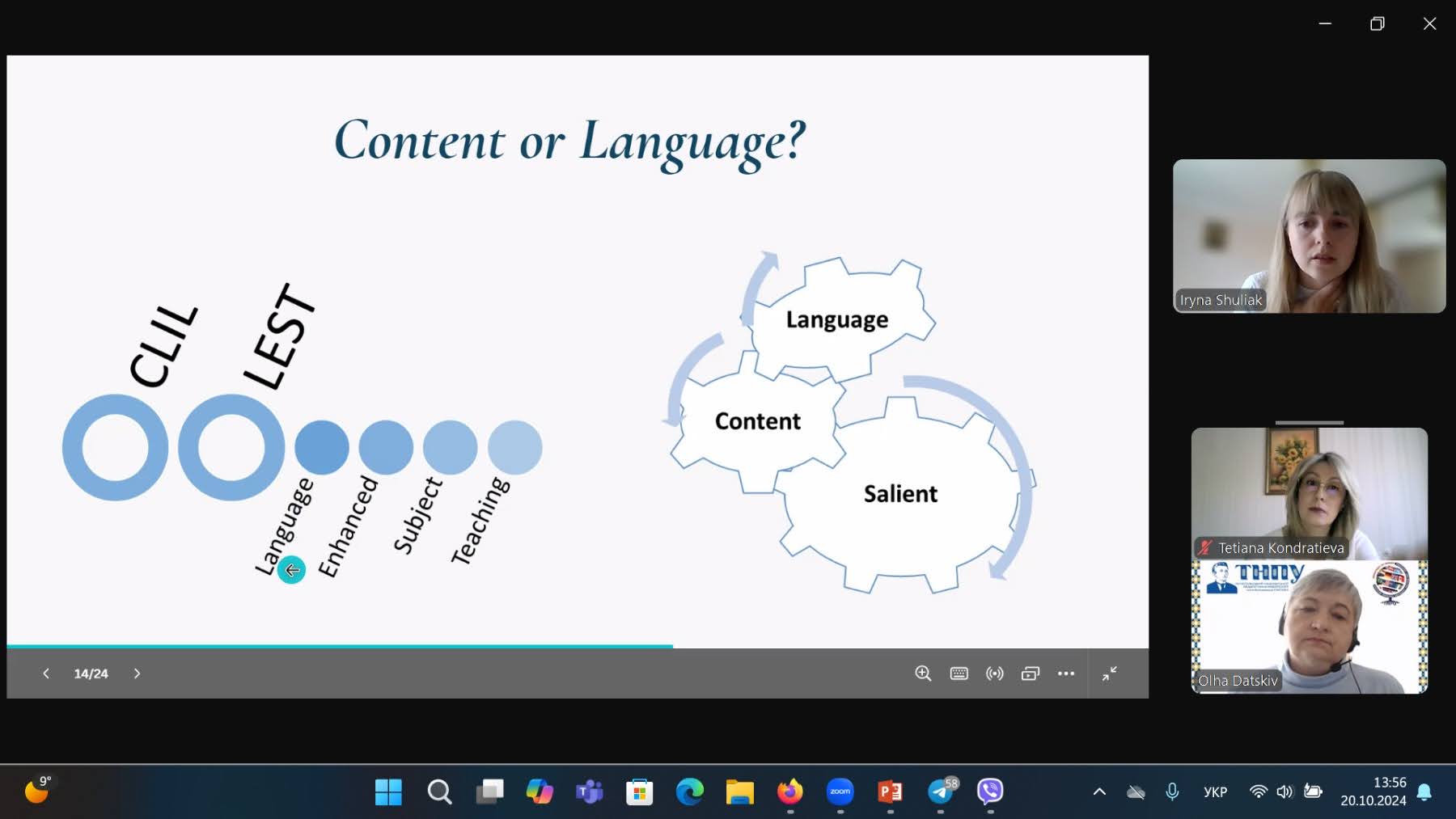 Друга частина секційного засідання була присвячена питанню інтеграції предметно-мовного навчання у підготовку майбутніх учителів англійської мови. Доповідачі розповіли про особливості цього процесу та продемонстрували їх практичне застосування. Особливу увагу приділили питанню оцінювання CLIL завдань.