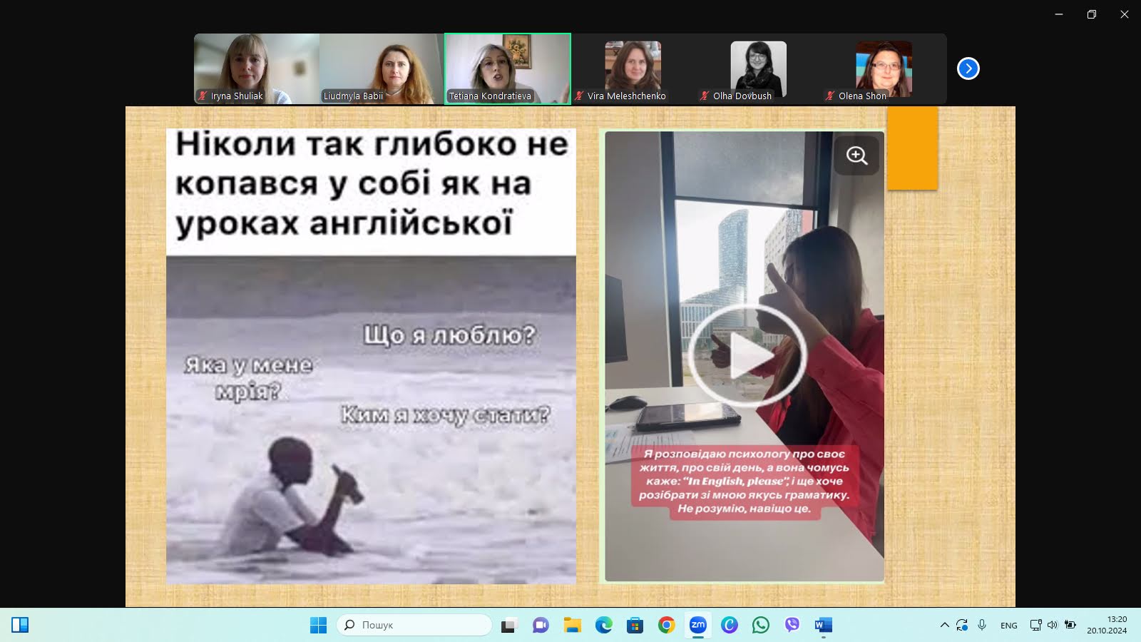 Використання підходів та прийомів позитивної психології у навчальному процесі під час війни є надзвичайно актуальною проблемою, тому доповідачі ознайомили учасників із основними принципами «позитивного навчання» та поділилися цікавими завданнями, які можна використовувати під час вивчення англійської мови, як от вправи на розвиток резильєнтності, підвищення самооцінки, практикування майндфулнесс та інші.