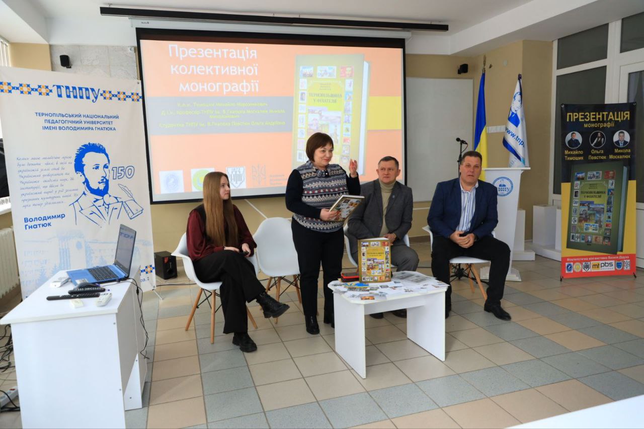 Докторант Тернопільського національного педагогічного університету імені Володимира Гнатюка Михайло Тимошик разом із співавторами — Миколою Москалюком та Ольгою Повстюк — представили студентам колективну монографію «Тернопільщина у філателії».