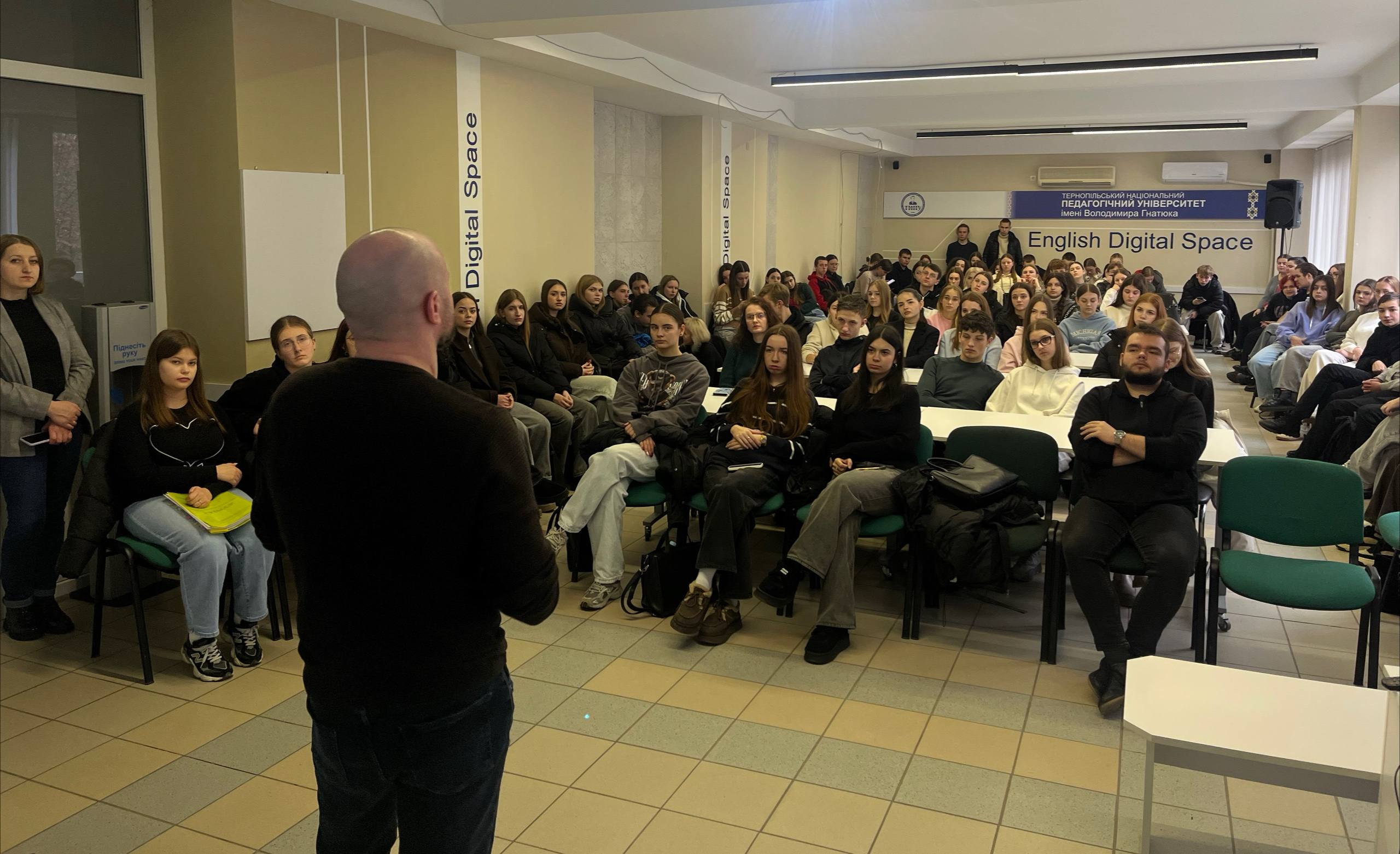 У Тернопільському національному педагогічному університеті імені Володимира Гнатюка відбулася зустріч студентів із військовослужбовцем Сил спеціальних операцій Збройних сил України, уродженцем Тернополя, на позивний «Грім». Військовий добровільно доєднався до війська у 2022 році, а також брав участь у бойових діях в АТО та є учасником Революції Гідності. Захід приурочили до Дня Гідності та Свободи. Він розпочався традиційною хвилиною мовчання, під час якої цього разу вшанували загиблих внаслідок російської агресії, у зв’язку з якою в Тернополі оголошено триденну жалобу.
