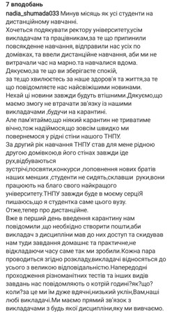 Формат відгуків просто вражає: від звичайних дописів до звітних фотоколажів, цікавих відеороликів та інформаційних заміток. Справжні професіонали – професіонали в усьому! Правда ж? Лекції та семінари за розкладом, домашні завдання, захист індивідуально-дослідних робіт, підсумкові атестації, конференції та конкурси – все в онлайн. Звісно, живе спілкування замінити складно, проте й на карантині студентам ТНПУ скучати ніколи.