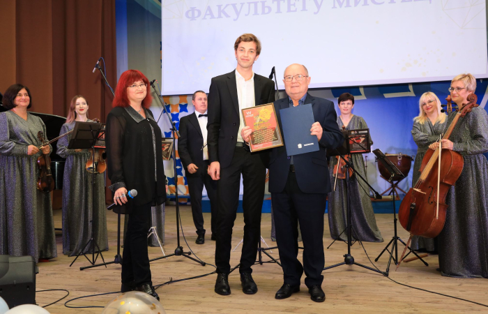 Під час нагородження, посміхаючись, Богдан Богданович відзначив, що активісти факультету мистецтв – єдині, які за відзнакою можуть вийди з усіх сторін актової залі, коли поглядом шукаєш їх у залі.