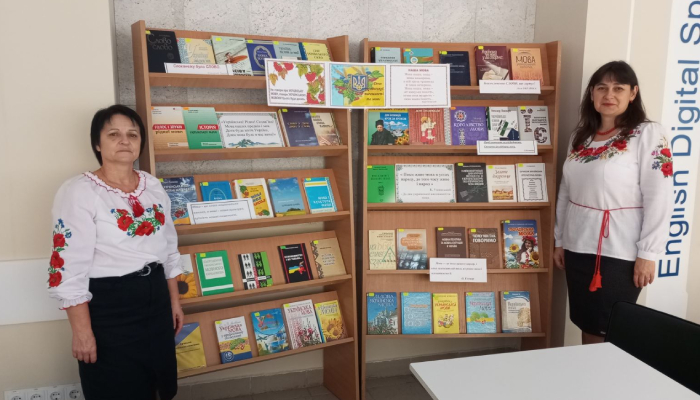 Представили книжкову виставку «Не говори про українську мову, а говори українською - цього буде достатньо» та привітали учасників свята працівниці наукової бібліотеки ТНПУ - Ольга Сенів і Ольга Шанайда. Під час презентації пригадали історію України та важкі тортури над людьми, які боролися за свою ідентичність, мову та самобутність. І справді, втрата мови