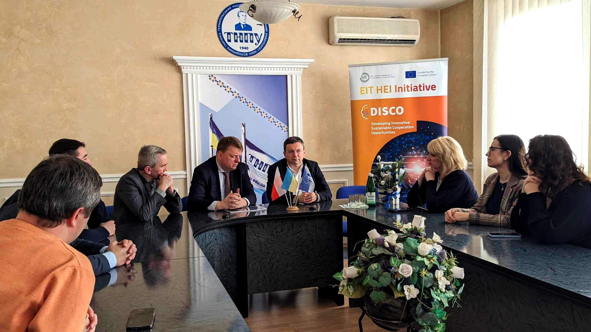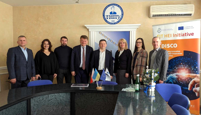 Адміністрація та науковці ТНПУ провели зустріч із представниками та партнерами проєкту DISCO з метою налагодження міжгалузевих і міжінституційних зв'язків із вишами, інноваторами, підприємцями, громадськими і державними партнерами у різних напрямках діяльності. Проєкт DISCO (Developing Innovative Sustainable Cooperation Opportunities) спрямований посилити інноваційний потенціал закладів вищої освіти через спільне навчання, співпрацю й обмін знаннями між студентами та представниками інноваційних екосистем університетів. DISCO складається з консорціуму навчальних закладів Швейцарії, Польщі, України. Норвегії та ряду громадських структур, серед яких і Асоціація “Ради Тернопільщини”.