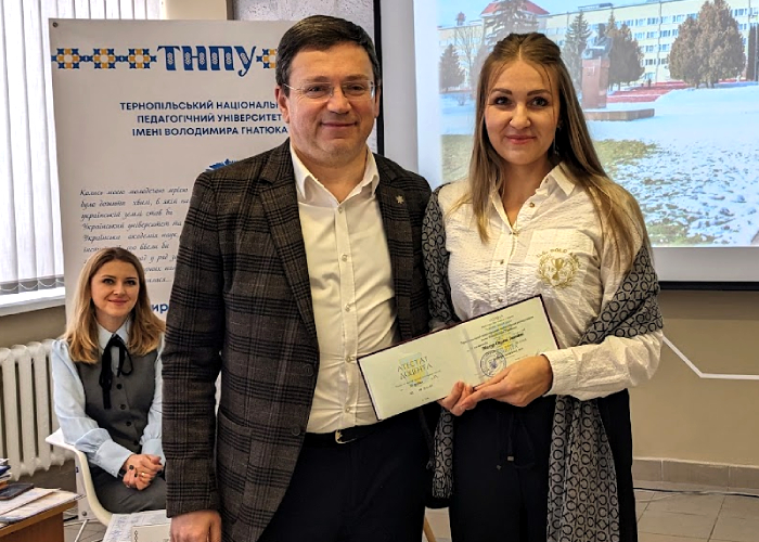 Дипломи доктора філософії за спеціальністю “Професійна освіта” отримала Галина Анатоліївна Діда, за спеціальністю “Філологія” — Катерина Василівна Трачук.